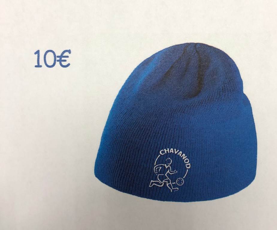 Avec l'arrivée du froid, de la neige, du vent au bord des terrains un bonnet aux couleurs du club est en vente.