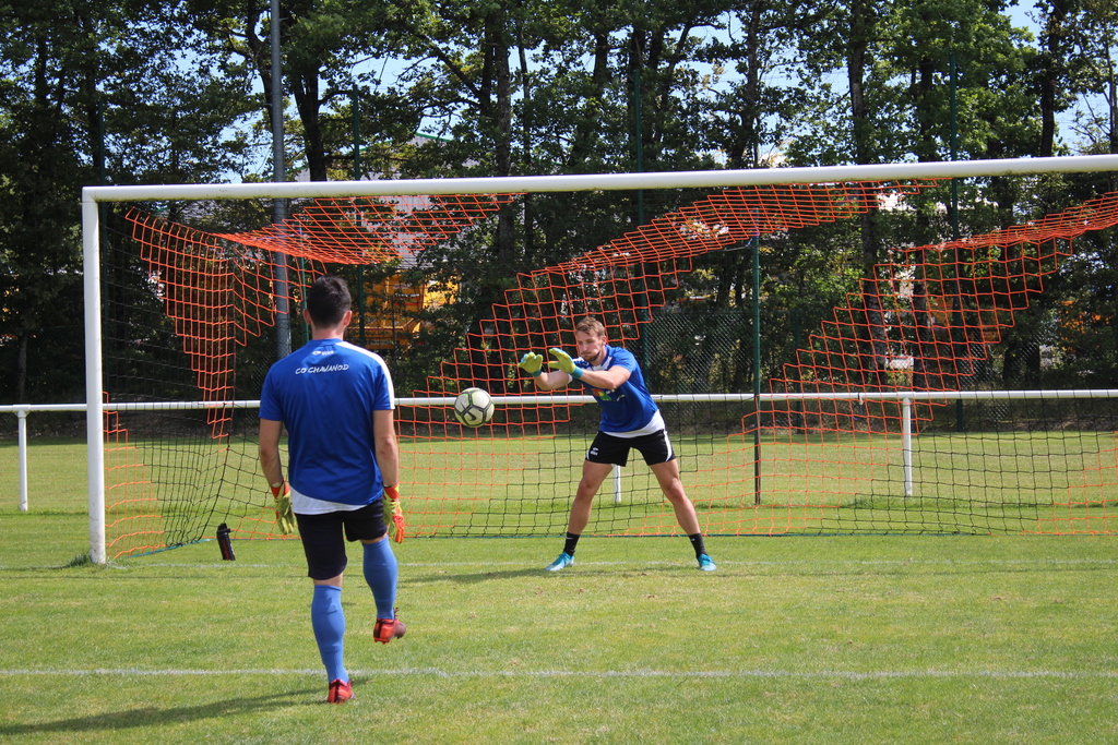 Louis CHALONS repasse à l’attaque à la 17eminute. Sur un débordement éclair, le jeune joueur du C.O.C. rentre dans la surface et vient au duel face au gardien. Malheureusement, cette fois ci, c’est le poteau qui repousse la frappe bleue.
