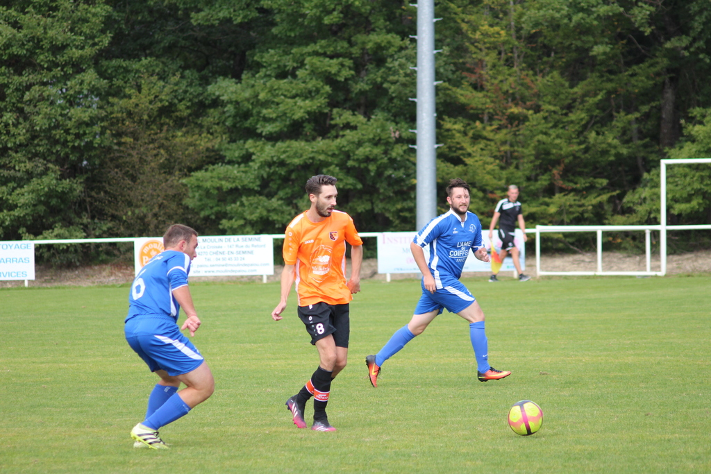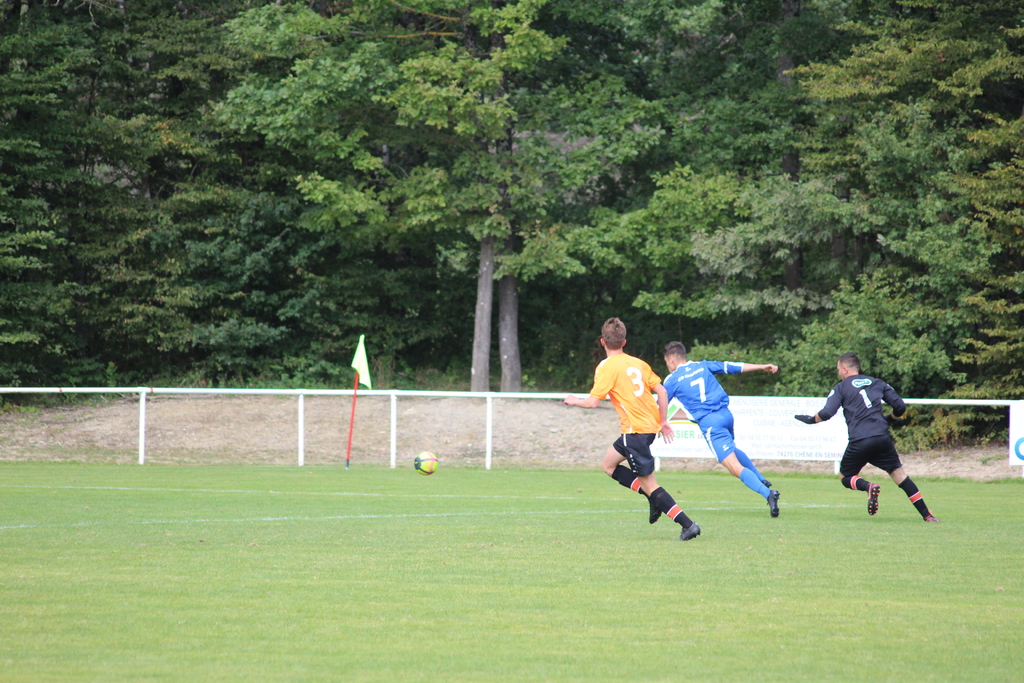 Malgré quelques petits efforts des Bleus par l’intermédiaire de Nicolas POLICARD qui butte deux fois sur le gardien, ou encore Alexandre BEAUQUIS qui croise trop une frappe, c’est clairement LA SEMINE qui domine les débats dans cette seconde période, et leurs efforts seront récompensés.