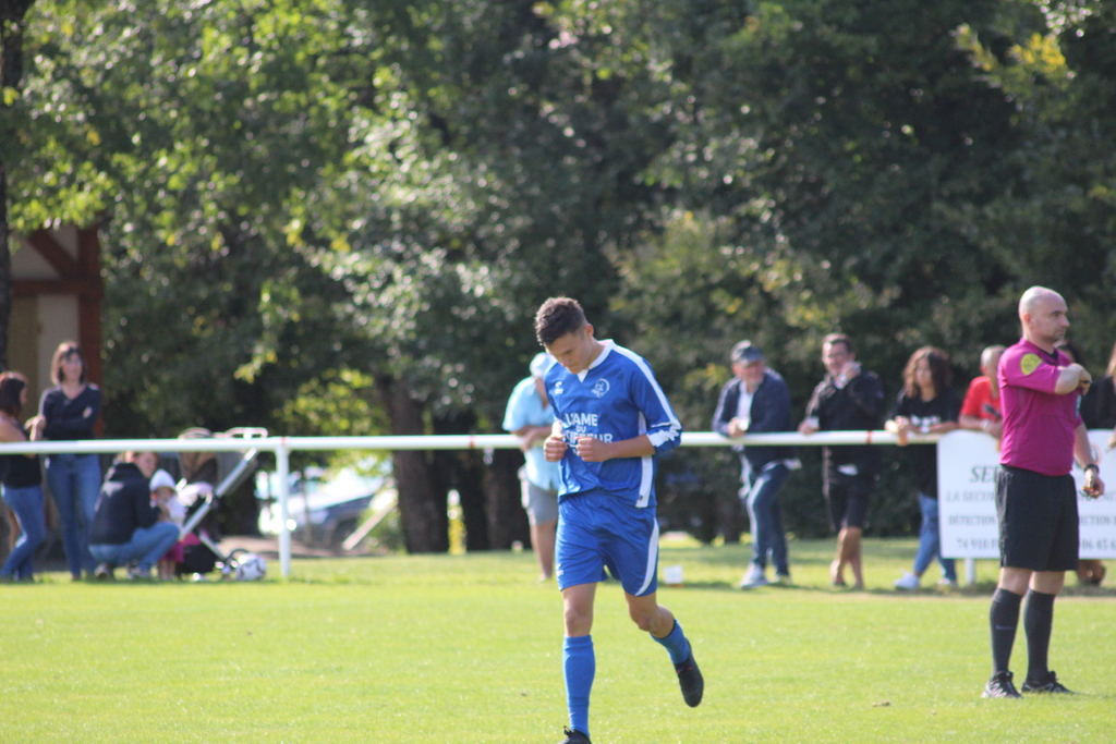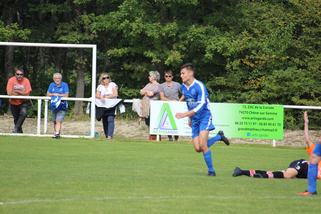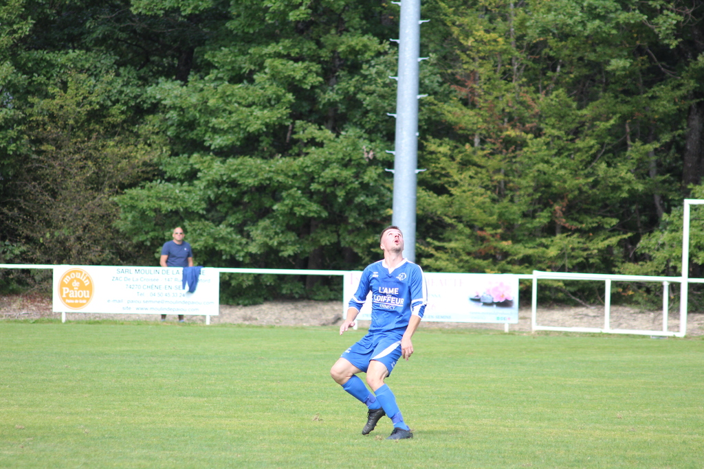 C’est à la 10eminute que le premier but du match est inscrit, et c’est aussi le premier but officiel de la saison 2021-2022 du C.O.CHAVANOD ! Sur une sublime passe de Rochdi BENSSABER, positionné en arrière gauche, qui trouve Alexandre BEAUQUIS en profondeur. L’attaquant des Bleus réalise un superbe enchaînement contrôle/lob à l’entrée de la surface, qui laisse tout simplement le gardien sur place. Ce dernier ne peut que regarder le ballon rentrer.
