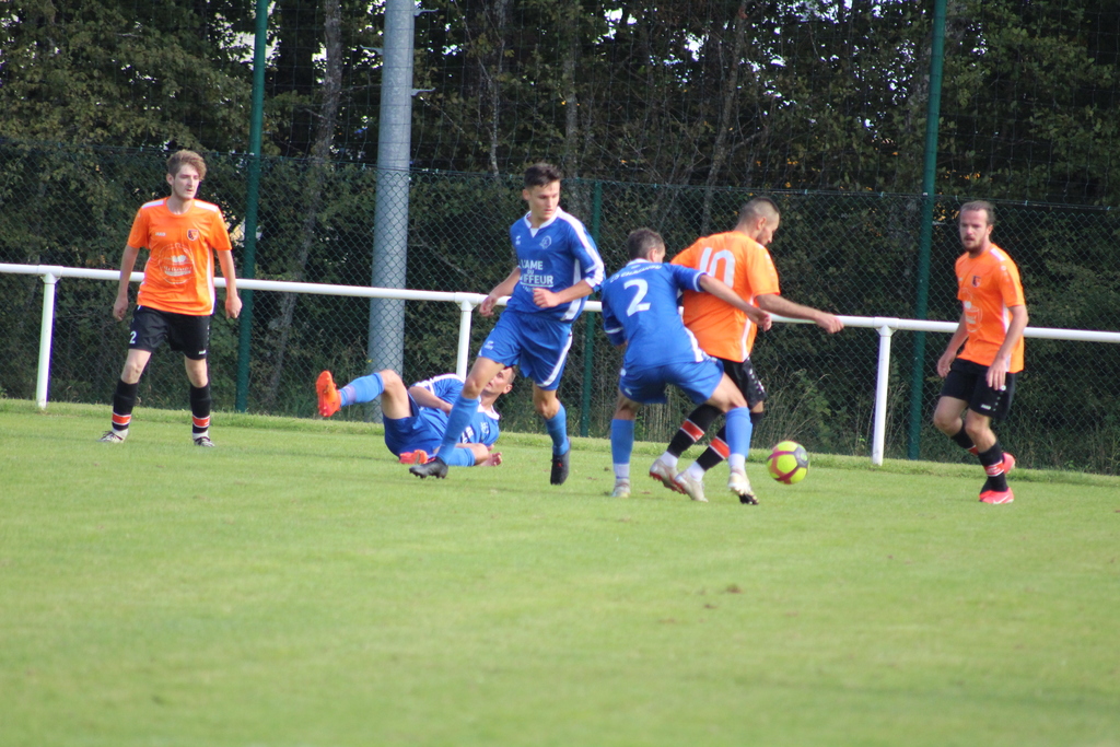 C’est après plus de 9 mois sans matchs officiels que les hommes de Stéphane DESVIGNES et Joël BAU retrouvaient la compétition. Suite d’une préparation aboutie et sérieuse, les Bleus se déplaçaient sur la pelouse du FC LA SEMINE, adversaire qu’ils commencent à connaître puisque deux ans auparavant, les deux équipes s’étaient rencontrées lors de l’ouverture de cette même Coupe de France, saison 2019. Les Bleus s’étaient imposés de justesse par 3 buts à 2.
